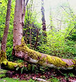 억센 얼싸않음이 비틀려 하늘로 오르네 그 아련한 사랑이 진초록으로 빛나네 저곳에The hug of intense green trees twist and rise to the sky.