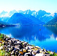 하늘 높은 곳에 앉아 있는 싸이프레스 계곡에는 스키꾼들의 눈바람소리가 눈을 헤치며 울린다